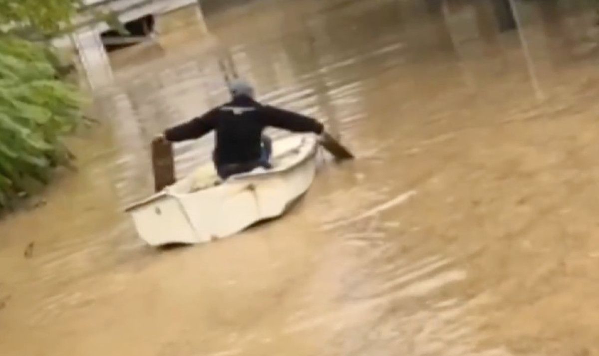 Sosyal medyada paylaşılan videolarda, bir kişinin su dolu caddede kayıkla ilerlemeye çalıştığı anlar dikkat çekti. Valilik ekipleri, sel suları nedeniyle kaybolan bir kişi için arama kurtarma çalışmalarını sürdürüyor.