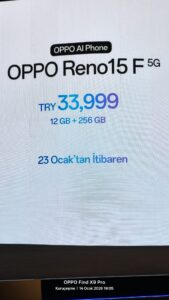 • OPPO Reno 15 F 5G (12 GB + 256 GB): 33.999 TL